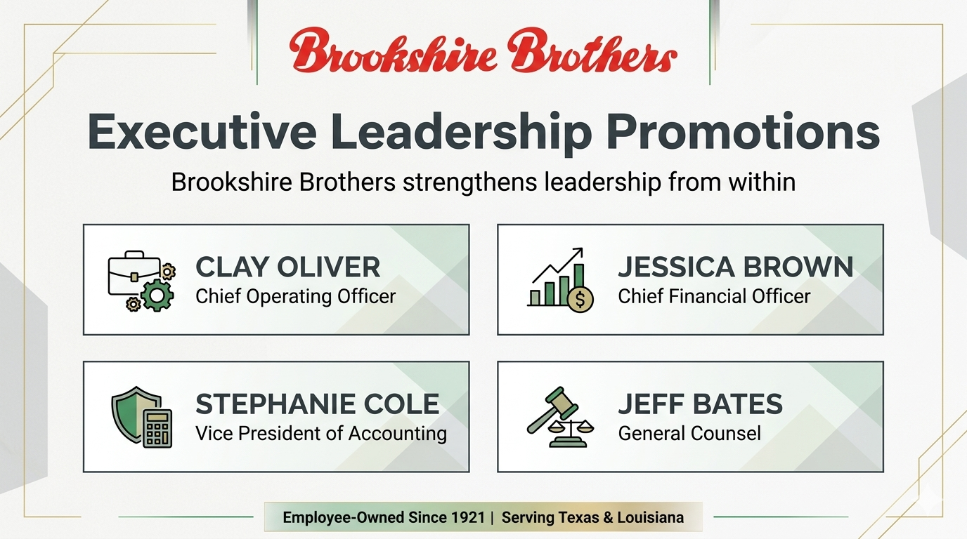LUFKIN, TEXAS (March 16, 2026)… Brookshire Brothers today announced a series of executive leadership promotions that reinforce the company’s commitment to developing talent from within and positioning the organization for continued growth.