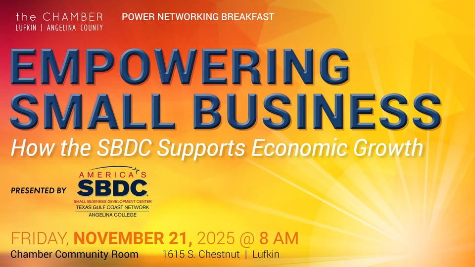 Join us Friday, November 21, 2025, for the Power Networking Breakfast presented by Angelina College Small Business Development Center! This month’s topic, Empowering Small Business: How the SBDC Supports Economic […]