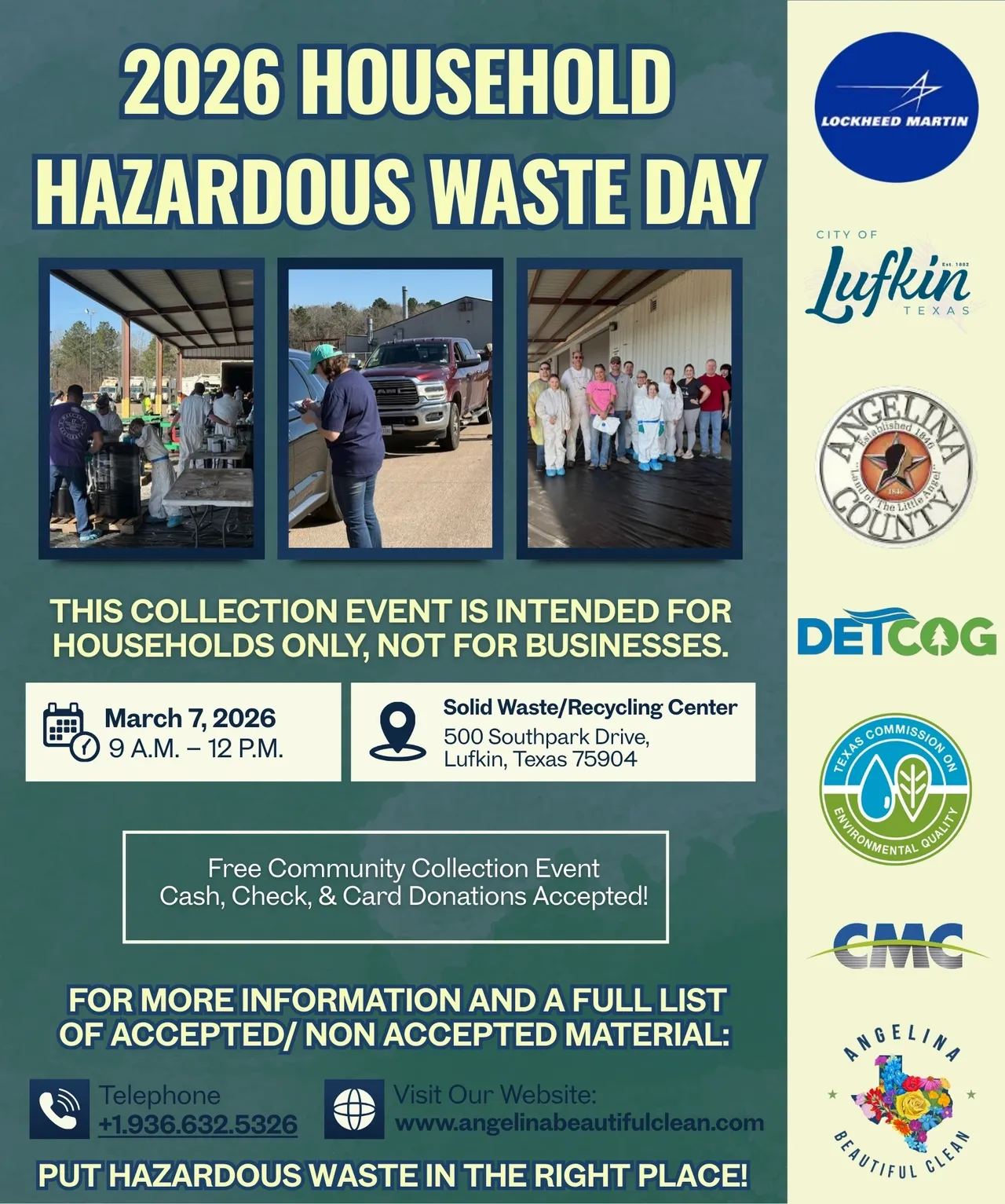 Lufkin, Texas — Angelina Beautiful/Clean (AB/C) invites Deep East Texas residents to safely clean out their garages, sheds, and under-the-sink storage areas at the 2026 Household Hazardous Waste Day, scheduled […]