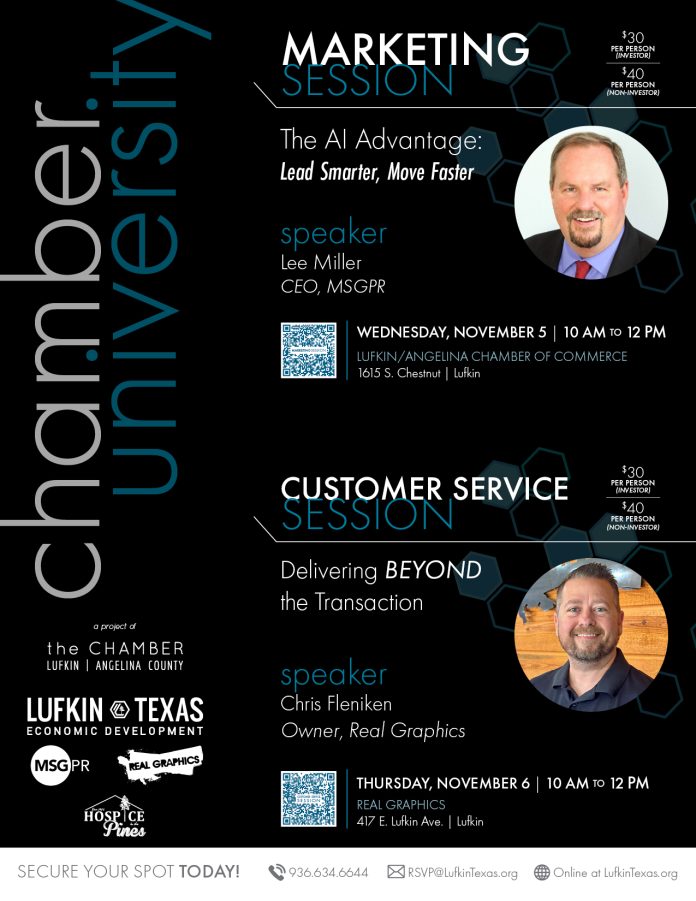 Join us this November for Chamber University, featuring two powerful learning sessions designed to help you lead smarter and serve stronger!