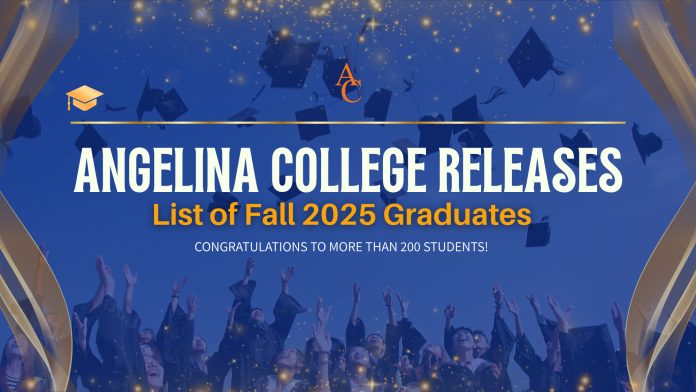 Angelina College is pleased to release the list of graduates for the Fall 2025 semester, with more than 200 students receiving their degrees and/or certifications in various fields of study. These conferred degrees and certifications encompass all graduates from summer and fall semesters (2025).