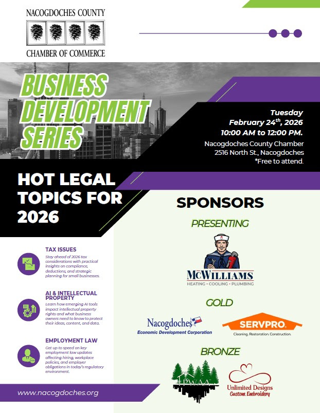 Gold Nacogdoches Economic Development Corp. (NEDCO) SERVPRO of Lufkin/S. Nacogdoches County Bronze Piney Woods Apartment Association Unlimited Designs